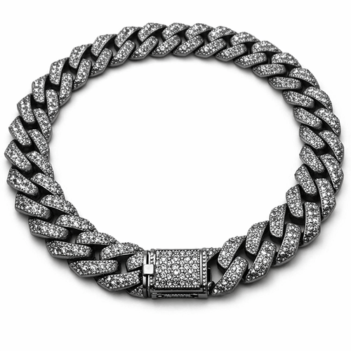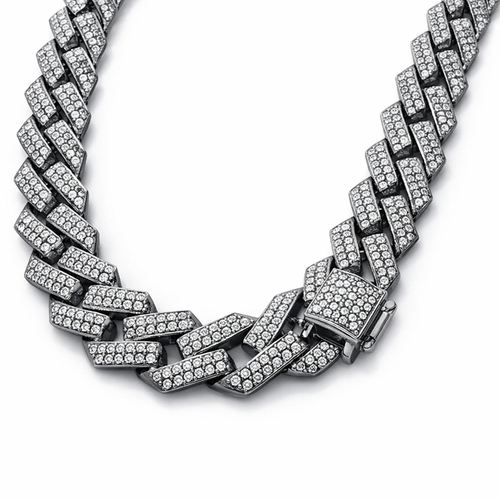 Dark Grey Iced‑Out Cuban Link Chain Necklace